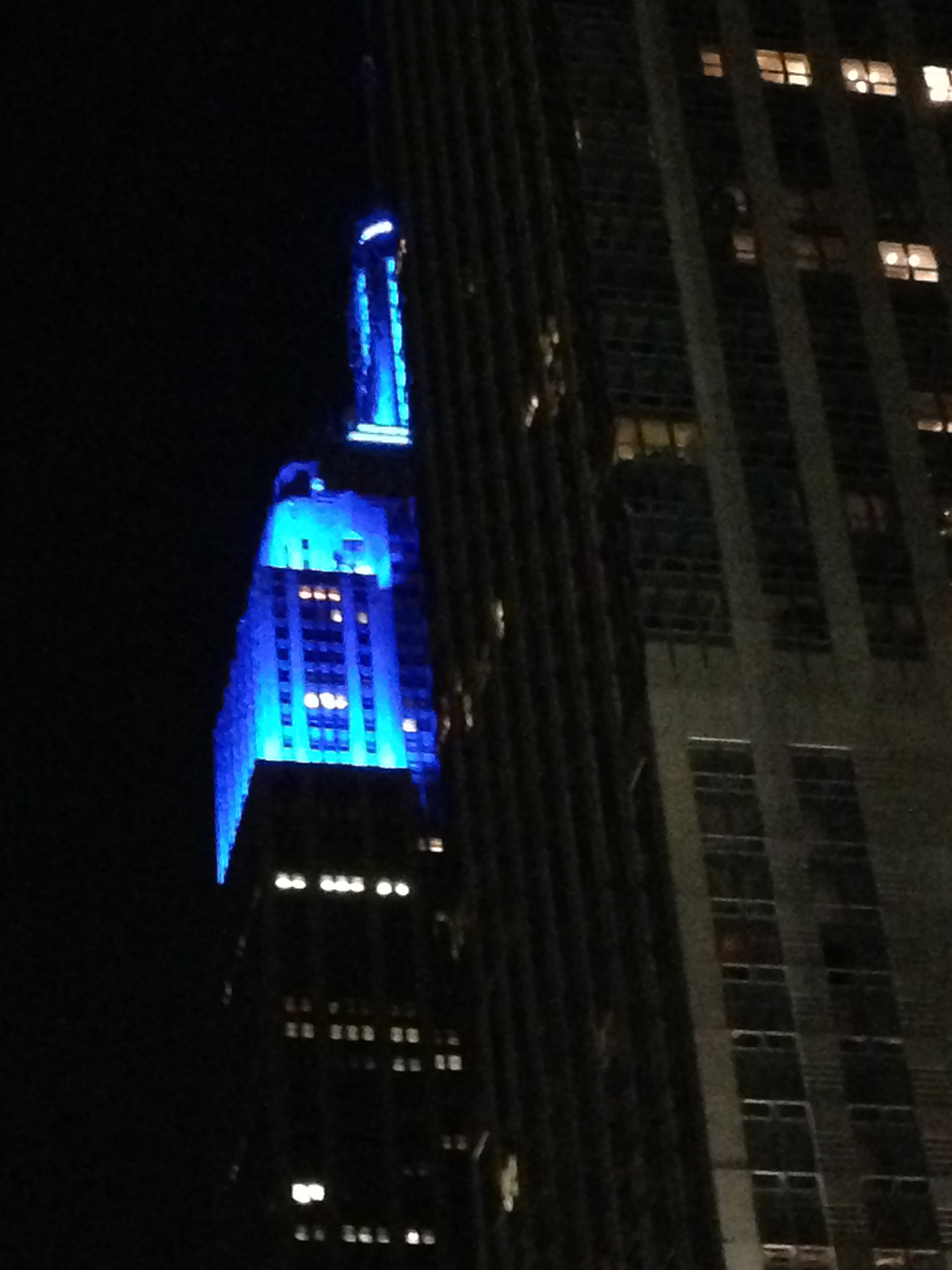 I thought the Empire State Building looked pretty cool tonight with the top lit up in blue so I drove around, yes I drive in NYC, to try to find a spot to take a good photo with my high tech iPhone camera but these were the best I could do….