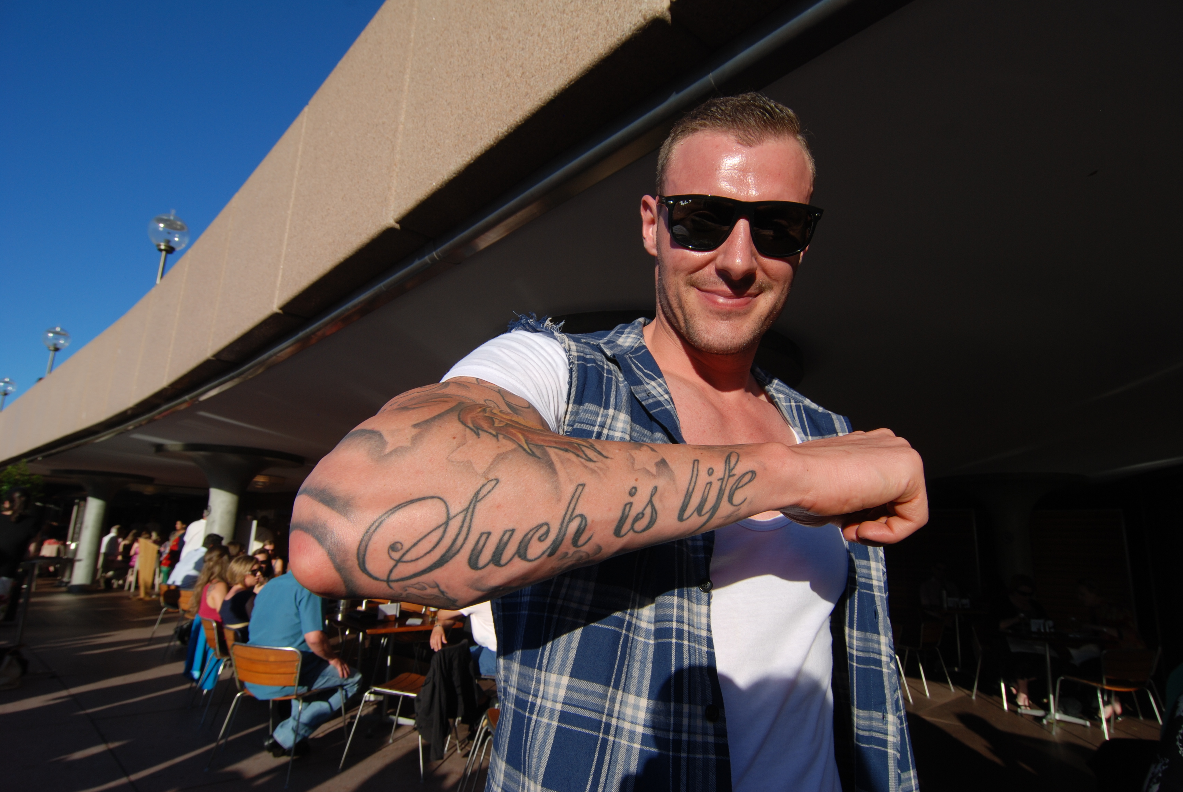 A quote I saw from Muhammad Ali – spoke to me….where I saw it was interesting – on a man’s arm outside the Sydney Opera House.