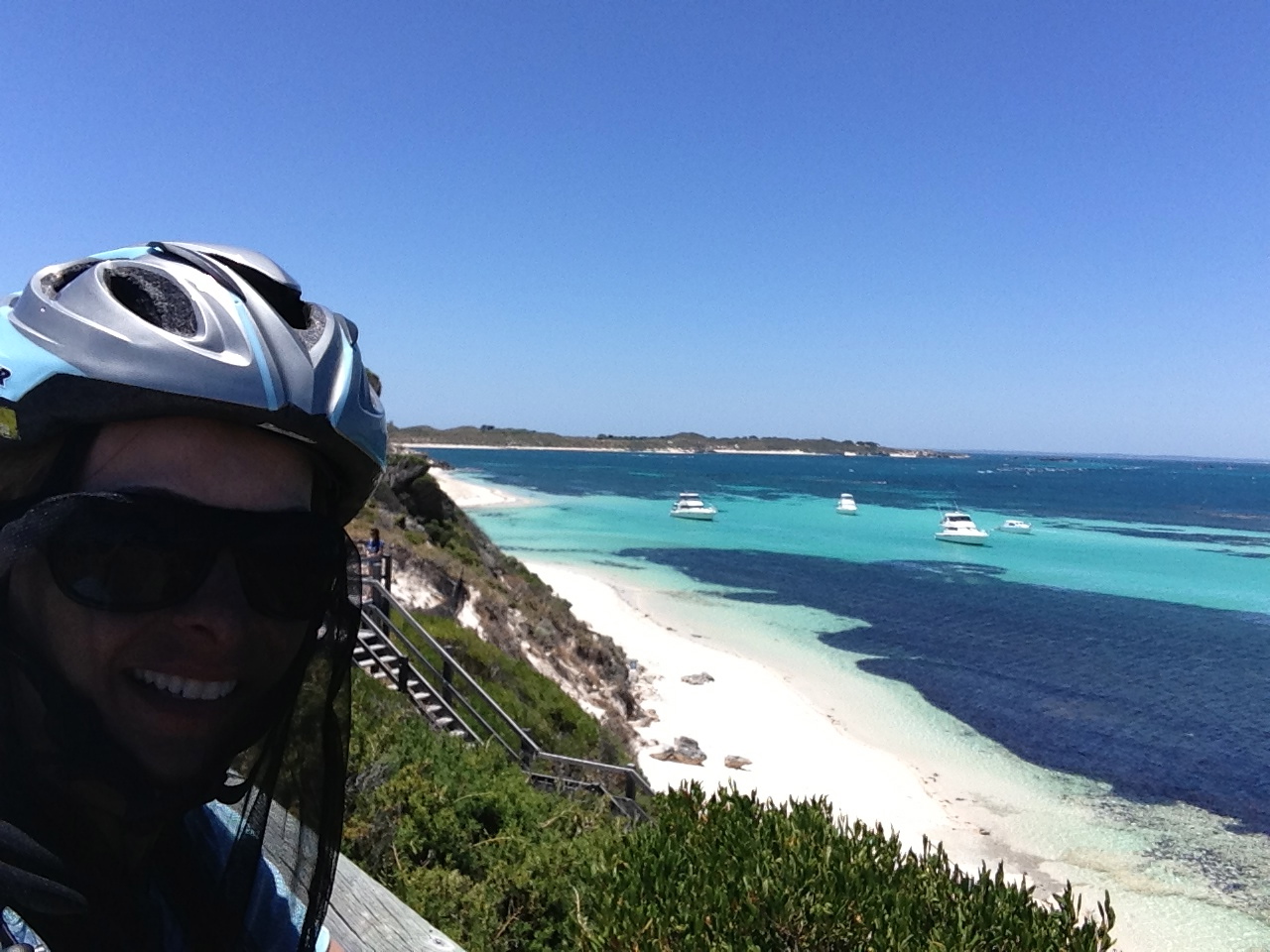 It hasn’t all been sunshine and roses. The other day I visited an island called Rottnest Island. The name suits and I should have listened to my gut which said to skip it but my judgment was clouded by several locals who encouraged the visit. It was a typical day for me when all I wanted was a chill beach day and instead spent my day searching for that perfect restful place. First I embarked on a three hour ferry ride. Thereafter, a forty-five minute wait to rent a bike followed by a one hour hilly bike ride (with fifteen pound backpack) against the wind with a fly net around my head. When I still hadn’t found the beach and it was 1PM and I had a time limit to the only ferry back at 330PM, I accosted four 75+ year old ladies and asked where the heck the beach was located and they convinced me to ditch the bike and hop on the bus with them. I tentatively agreed. At this point I was so tense that I drank the wine I had bought for said non-happening relaxing beach day out of the bottle while on the bus. I went back to bike store to get refunded my money and then was driven to a beach that was gorgeous and not windy and only a 15 minute walk from town and had a whopping 45 minutes there before I had to walk back to town to catch the hellacious freezing three hour ferry back to Perth. Due to high winds it was extremely rocky and I thought for sure we would tip over. Was in bed at 9pm that night. Whew exhausted just writing it! Pretty water….not worth flies, wind, heat hell….